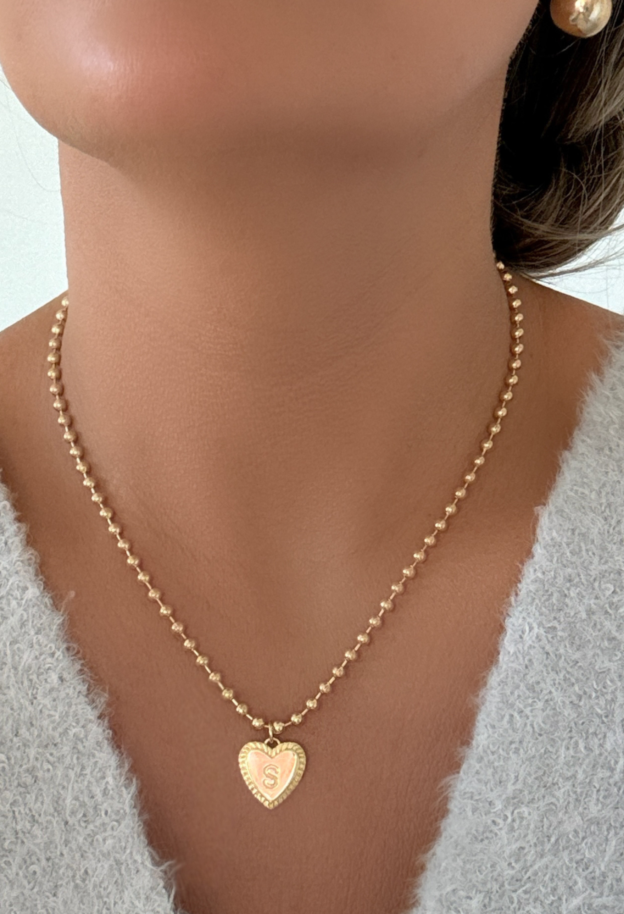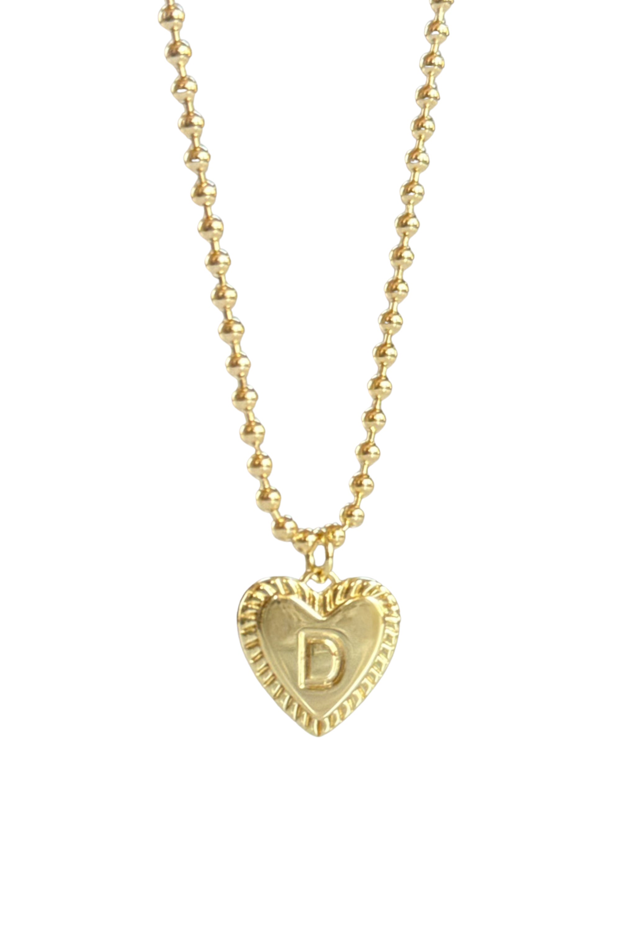 A personalized initial heart necklace on a sleek gold ball bead chain—an everyday staple and a meaningful gift for birthdays, Valentine’s Day, anniversaries, or just because.